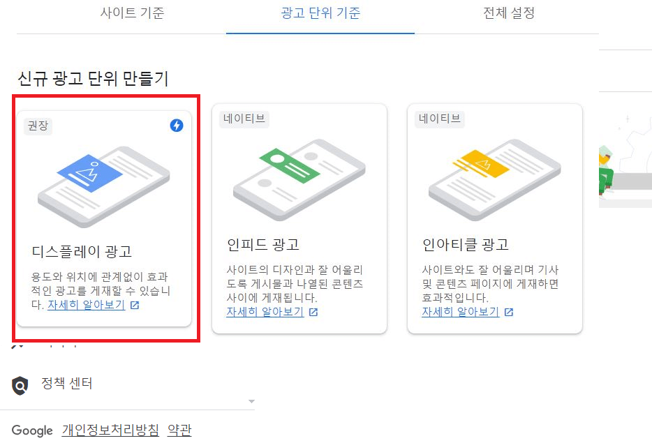 - [디스플레이 광고] 옵션을 클릭해 주세요.